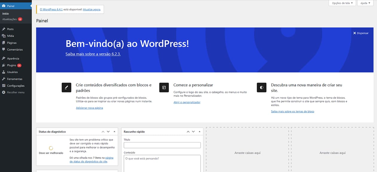- Se você precisa criar um site institucional, existem diversos plugins construtores de sites WordPress disponíveis na biblioteca de plugins;